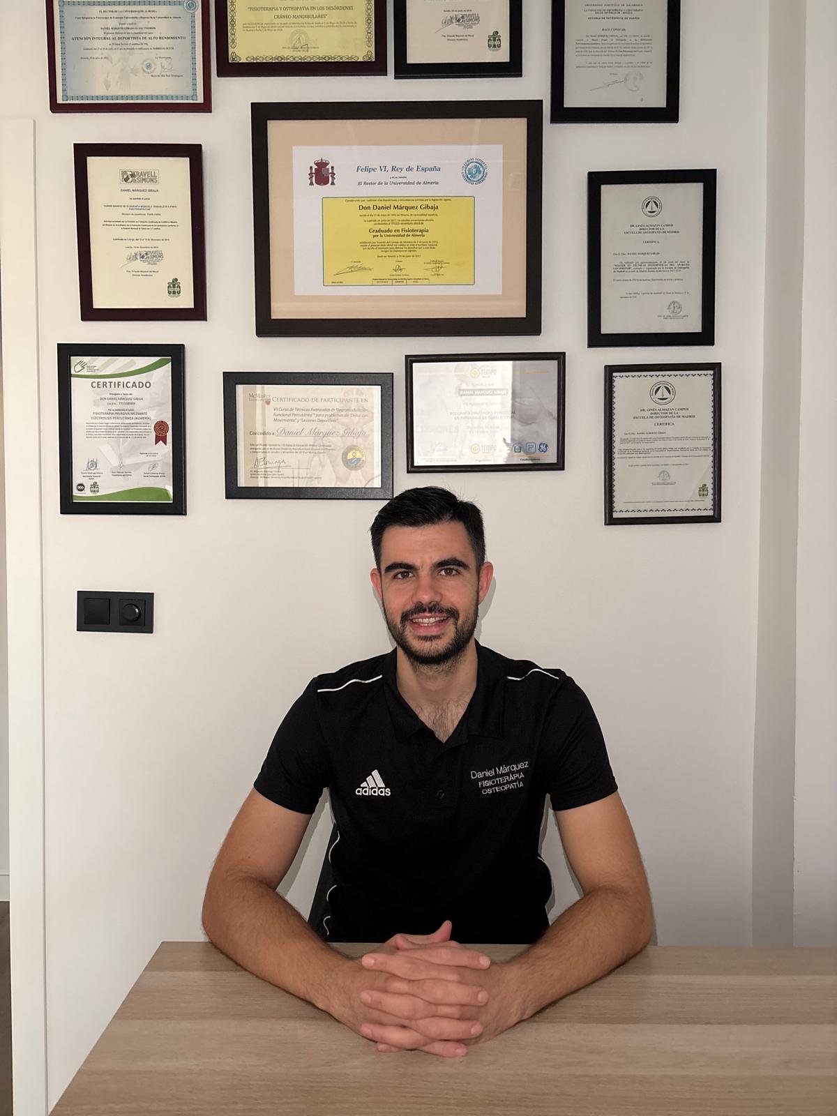 Soy Daniel Márquez Gibaja, Fisioterapeuta colegiado nº 8057 en el Ilustre Colegio Profesional de Fisioterapeutas de Andalucía. Me gradué en Fisioterapia por la Universidad de Almería en 2017 y desde entonces he mantenido un compromiso constante con la Formación Continua para ofrecer Tratamientos actualizados, eficaces y adaptados a cada paciente. Entre 2017 y 2022 completé mis estudios en Osteopatía, lo que me permite abordar cada caso desde una perspectiva global e integradora, combinando la Fisioterapia Tradicional con Técnicas Avanzadas para obtener los mejores resultados.